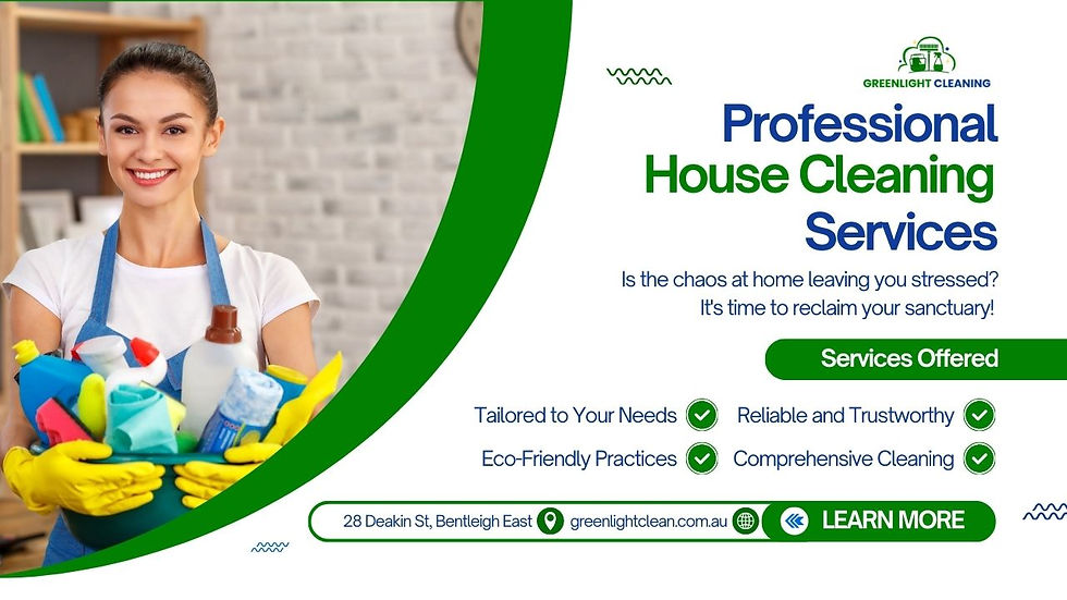 Greenlight Cleaning is a Melbourne-based professional cleaning company dedicated to providing exceptional cleaning services tailored to the unique needs of homeowners. With a focus on reliability, professionalism, and eco-friendly practices, Greenlight Cleaning ensures homes shine brighter and families live healthier.